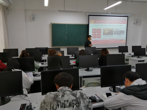 为提升党课教育时效性,发挥党课教育主阵地作用,使员工党员理论学习有收获、思想政治受洗礼,不忘初心,牢记使命!2019年5月15日中午,体育平台官网员工党支部邀请邓峰琼老师、蔡静老师、张玲佳老师在1-309机房为2017级发展对象共上了一堂精彩深刻的党课。