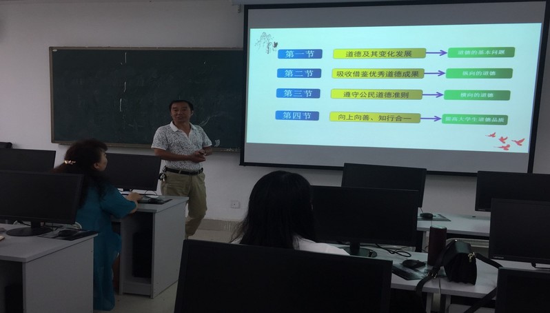 此次以教研室集体备课确定的课程进度为内容,借鉴、吸收了第一轮、第二轮磨课中关于教学设计的优秀成果,改进了前两次磨课中提出的问题。陶元峰老师、何国萍老师、张艳老师、张瑶老师、范婷老师分别针对“道德的含义”、“道德的起源”、“道德的本质”、“道德的功能和作用”进行了课程设计展示。教研室其他与会教师从教学设计、教学内容、教学态度、教学手段等方面,就以上每位老师的优缺点进行了点评。