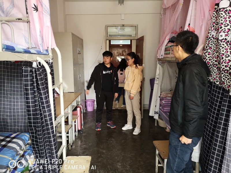 检查过程中,对宿舍的地面卫生、物品摆放、床铺整理等方面逐一进行了检查和打分,尤其对用电安全,有无大功率电器、插线板是否固定、走线是否规范等问题进行了排查,并及时进行了纠正。检查中询问了同学们的学习和生活情况,并表示了对大家的关心,逐一叮嘱同学们要互帮互助,营造温馨和谐的宿舍生活环境,提高自我保护意识,注意人身、财产安全和宿舍安全。同学们也表示会加强内务整理、提高安全意识,发现问题的宿舍及时纠正,形成良好的安全卫生习惯,为自己营造一个温馨的家。