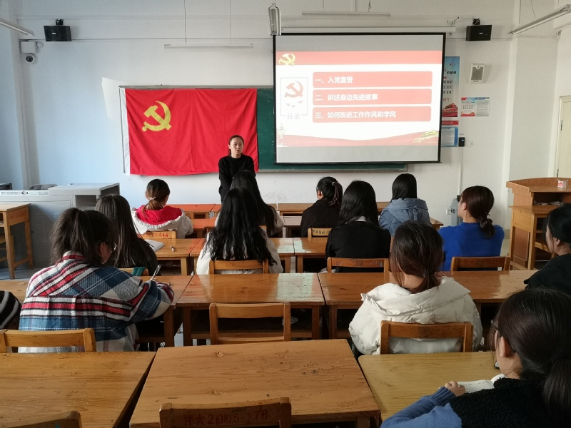 2019年11月21日下午,体育平台官网员工支部全体预备党员和发展对象在3-303教室开展“忆初心、明职责、迎评建”主题党日活动。本次活动由员工党支部书记张玲佳同志主持。