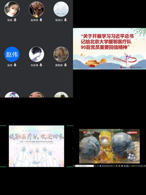 2020年4月22日晚上8点,体育平台官网思想政治教育班在分团委书记范婷的主持下召开了“关于开展学习习近平总书记给北京大学援鄂医疗队90后党员重要回信精神”的主题班会。