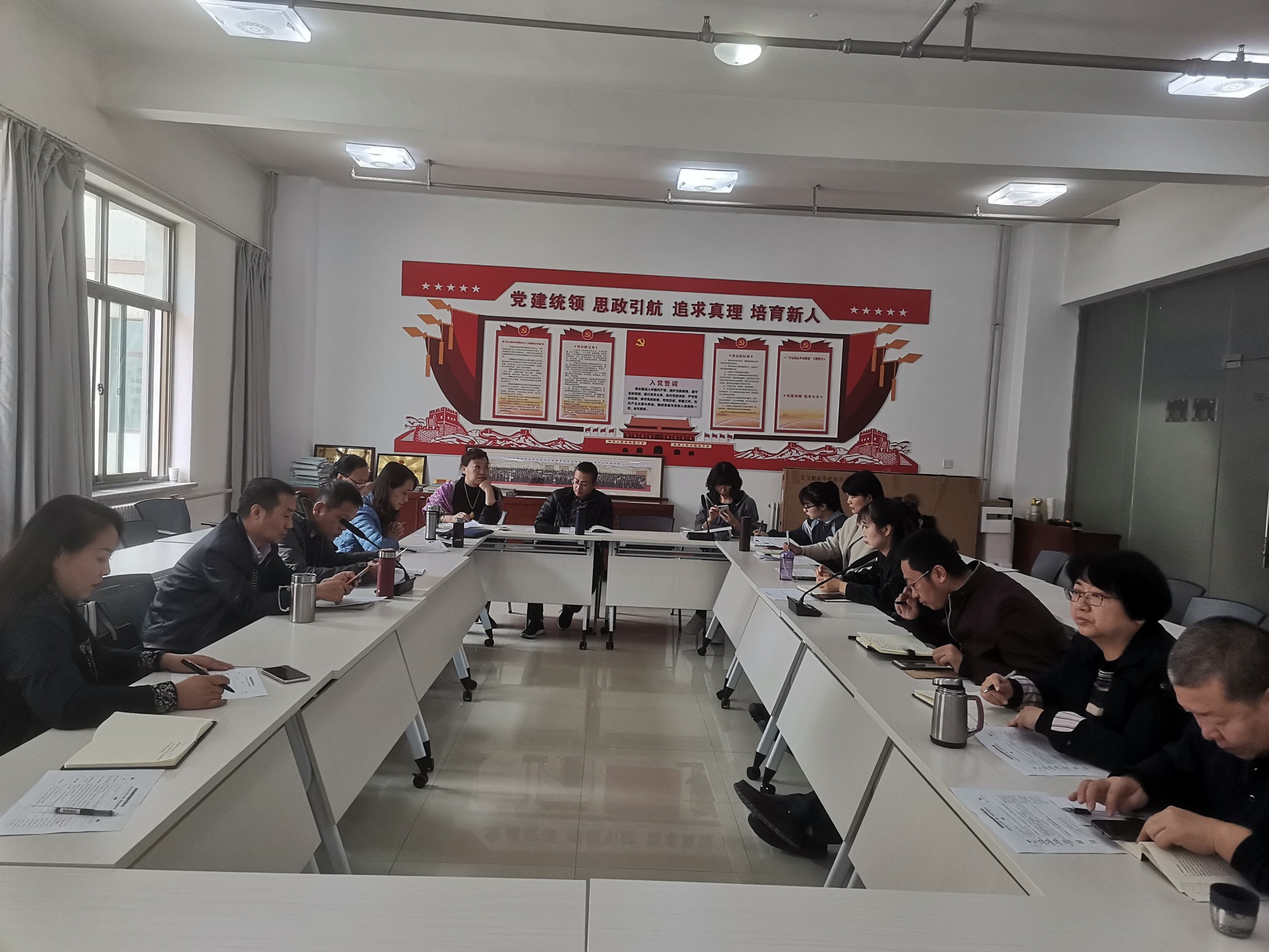 会议过程中,各位教师还根据课程的特点以及教学计划、教学大纲的要求,研讨了思想政治理论课实践教学的相关问题,重点讨论了教研室实践教学方案和本学期实践教学的主题、形式和要求。并就启动员工“我也来上思政课”的预赛选拔活动,微课录制达成一致意见。教师们明确分工录制慕课,一切从实际出发,斟酌选用素材,立意深刻,同时让员工更多的参与到思政课展示中,使思政课更加“可亲、可感、可传”,增强了思政课的针对性和有效性。