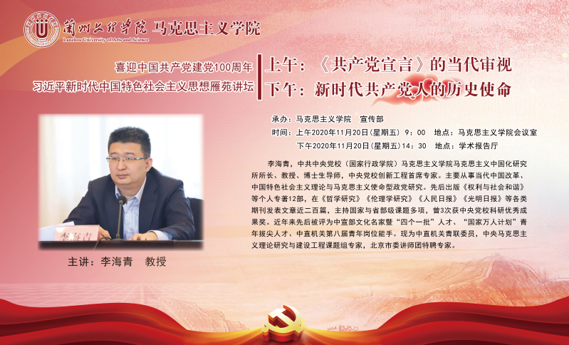 讲座题目:《共产党宣言》的当代审视、《新时代中国共产党人的历史使命》