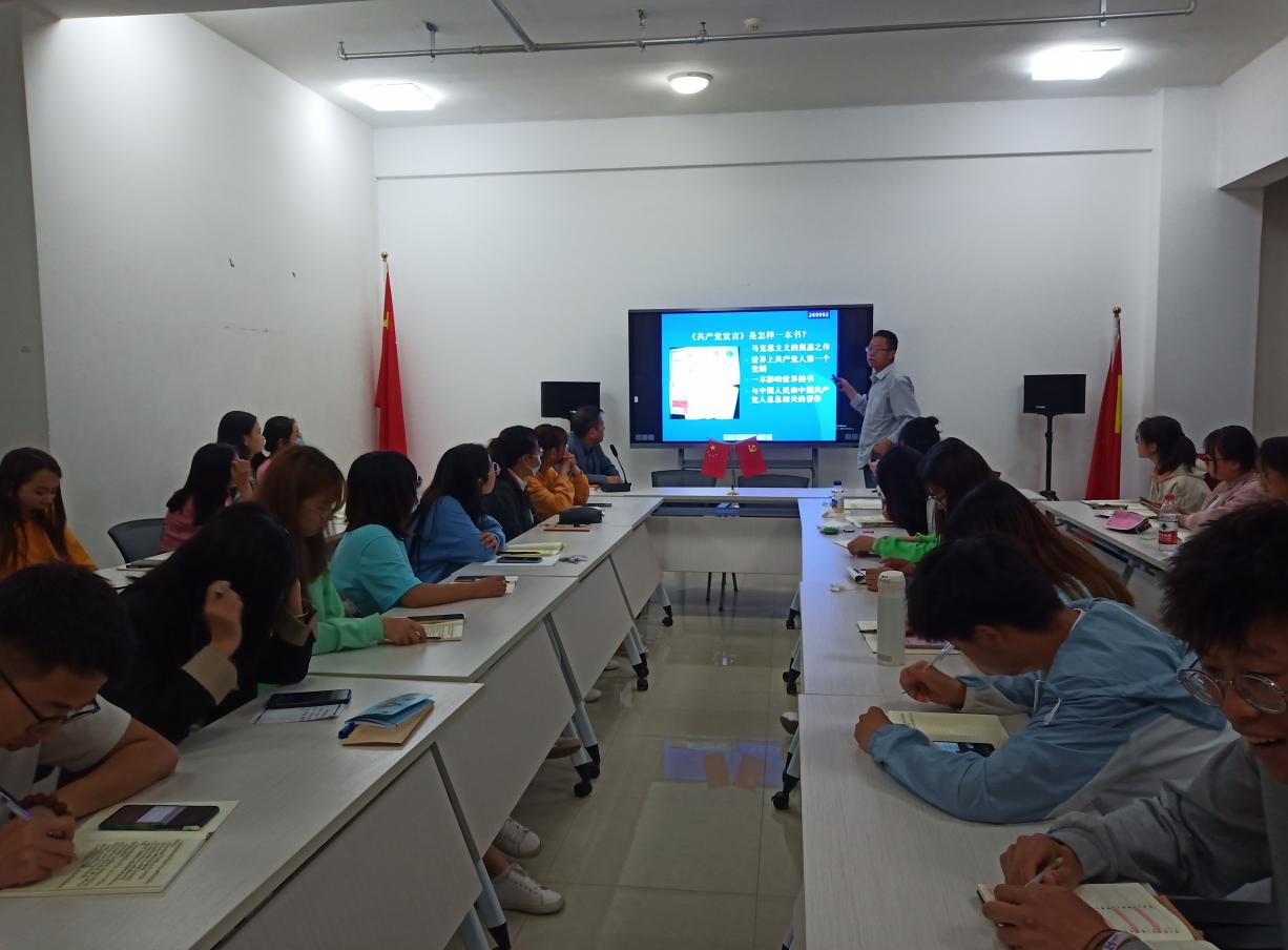 为认真落实习近平总书记关于党史学习教育动员大会重要讲话精神,激励青年员工学史明理、学史增信、学史崇德、学史力行,2021年5月23日,体育平台官网在公司会议室举办“《共产党宣言》的当代阐释”读书会。读书会由体育平台官网马光耀博士主讲,教工党支部书记张吉军老师主持,公司部分师生参加此次活动。