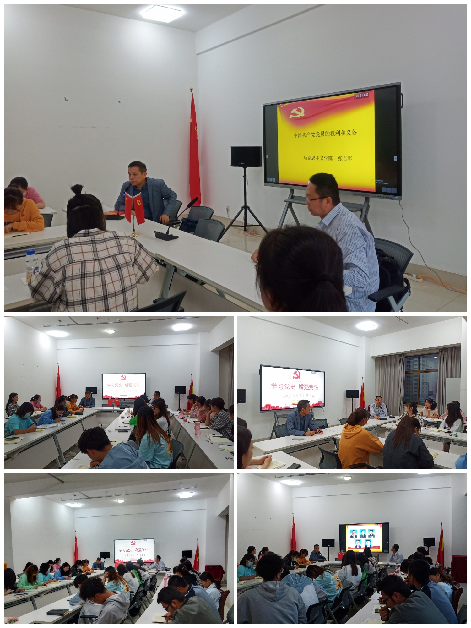 5月23日,由张吉军老师讲授题为《中国共产党员的权利和义务》专题党课,张老师对中国共产党员的权利和义务做出了深入浅出的解释。强调要充分认识到中国共产党员的权利和义务的重要实际作用,认真履行党员义务、正确行使党员权利,指导学员们要结合实际,树立远大理想并脚踏实地,不断提高自己的思想觉悟和理论水平,时刻以党员标准严格要求自己。