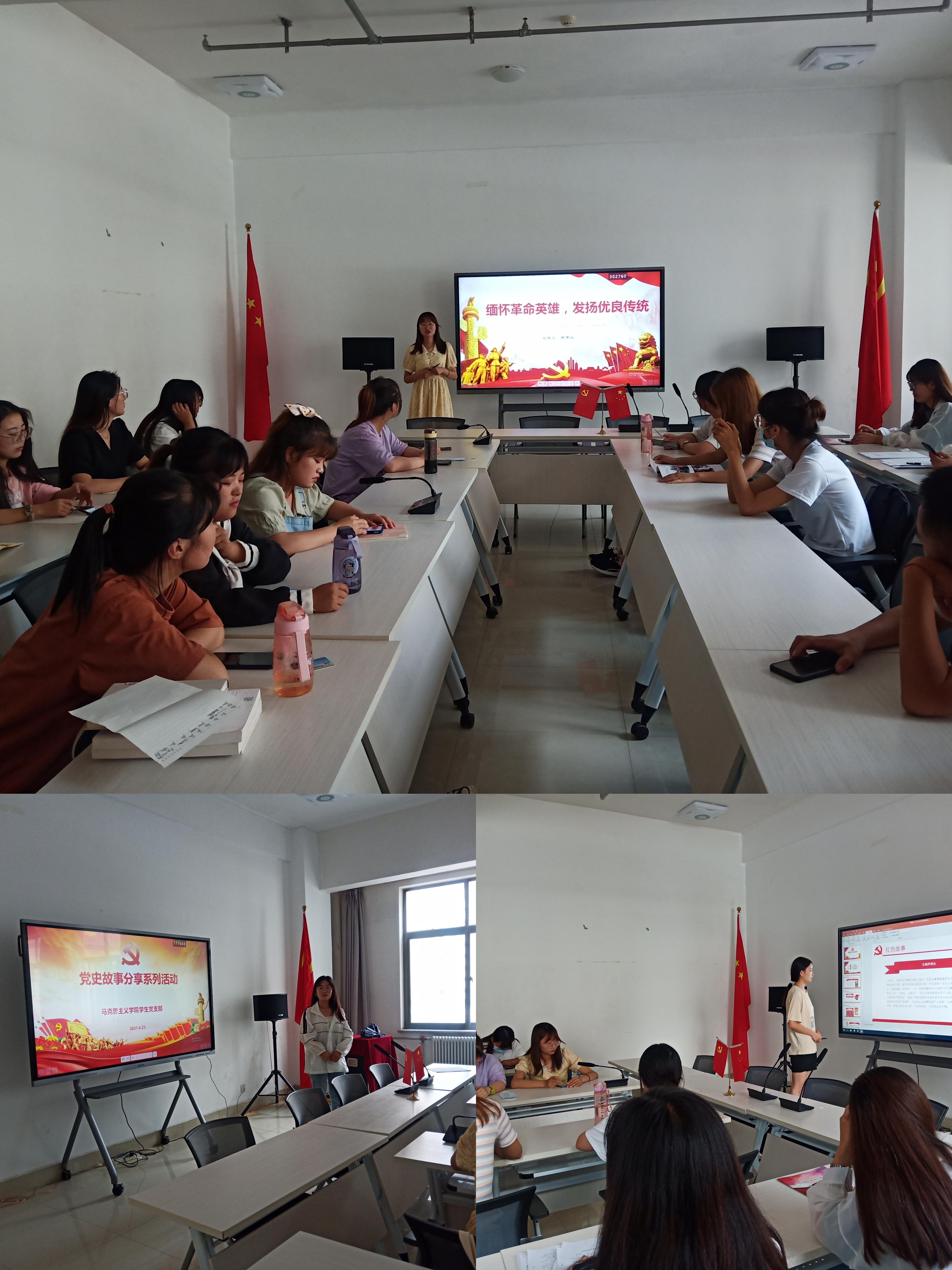 党史故事分享的过程中,同学们以党的重大事件为线索,以不同时期的典型事例、历史人物、精彩故事为主干讲述党史事迹。胡芳兰同学分享了当代著名教育家辛安亭先生的故事,先生一生著述宏三史,育才遍九州,始终秉承艰苦朴素的共产党员生活作风,其孜孜以求钻研,不息育人的精神是同学们取之不尽用之不竭的宝贵财富。