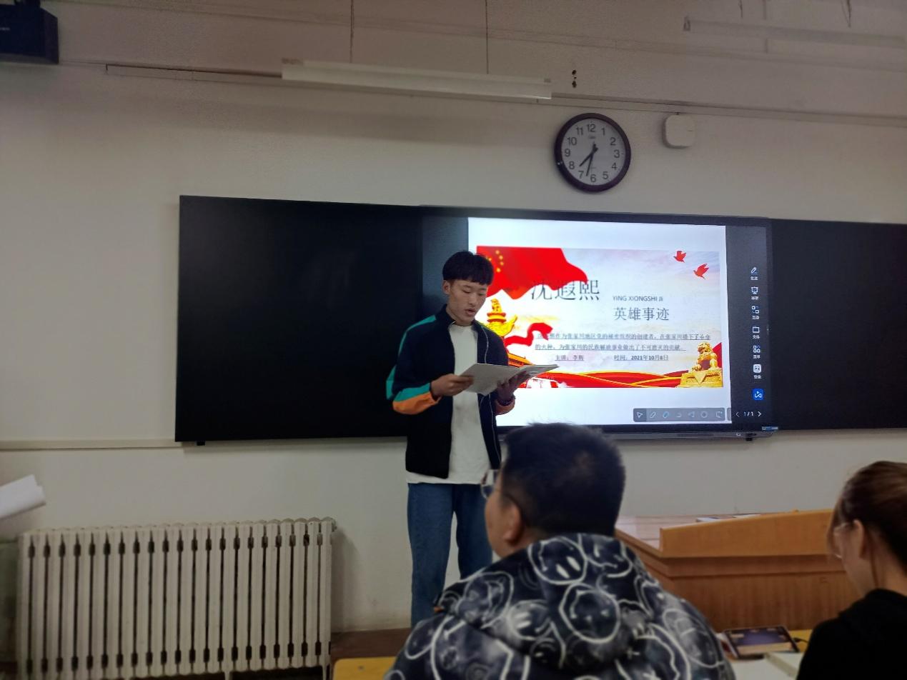 活动伊始,同学们齐唱共青团员之歌“光荣啊,中国共青团”。随后,团支书李寅玺以“讲述革命故事,感悟革命精神”为主题,向同学们说明了举办此次主题团日活动的目的和初心就是要通过实际举措积极落实团的“三会两制一课”制度,不断强化同学们的团员意识、积极发挥团组织教育主体的作用,通过革命精神来引领同学们“以实现中华民族伟大复兴为己任,增强自身的志气、骨气和底气”,使自己不负青春、不负韶华!习近平总书记强调,甘肃是一片红色沃土,在中国革命历史进程中发挥了不可替代的重要作用。同学们充分利用国庆假期了解自己家乡的革命事迹和英烈故事,在本次主题团日活动中,同学们积极宣讲家乡的革命事迹,充分挖掘家乡革命历史,勇做新时代革命历史宣讲员,将家乡的革命事迹宣讲到课堂中来,使同学们不但了解了甘肃的革命历史,还通过同学们的讲解学习到了更多的党史知识。