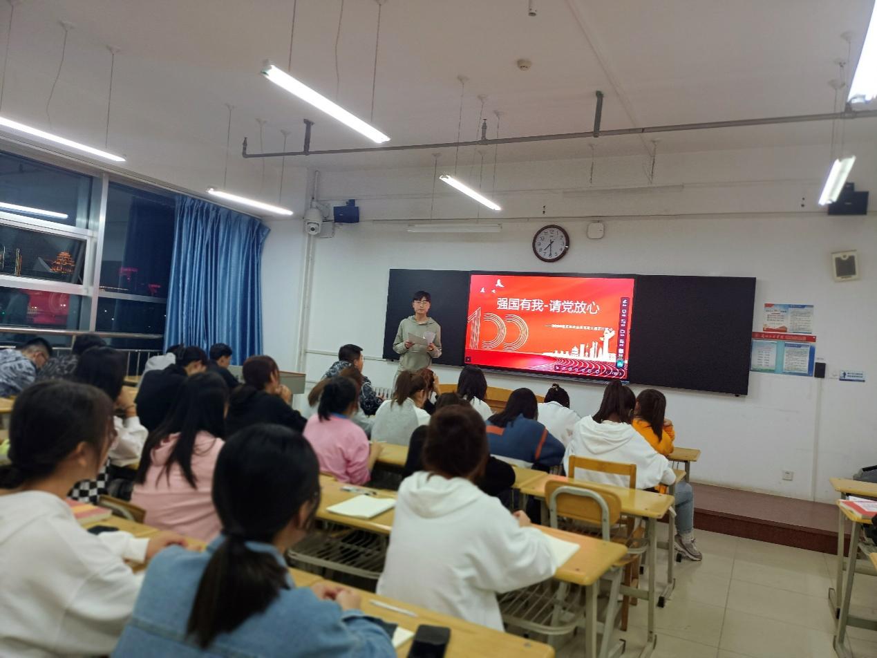 为深入学习贯彻习近平总书记在庆祝中国共产党成立100周年大会上的重要讲话精神,积极响应体育平台官网校团委关于开展“强国有我,请党放心”主题团日的号召。2021年10月8日晚,体育平台官网2020级思想政治教育班团支部以“强国有我,请党放心”为主题,开展主题团日活动。本次主题团日活动由2020级思想政治教育班团支书李寅玺主持,2020级思想政治教育班全体同学参加。