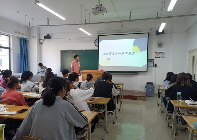 首先,沙莉老师对近期征求的班委换届选举意见进行了简单的总结,对班委同学在第一学年中的各项工作给予了充分的肯定。其次,各宿舍舍长通过PPT、短视频等方式展示了本宿舍在第一学年的回忆总结,展示了在第一学年年在学习和生活等方面的点滴。