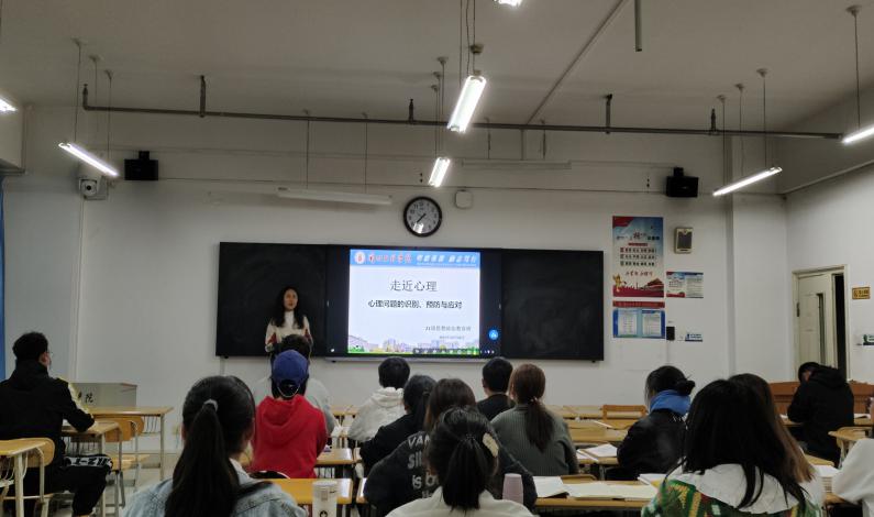 班会伊始,21级思想政治教育班心理委员马媛以范进中举的故事导入,通过人物性格特点以及性格在外界干扰下所产生的疾病,反映出心理问题的识别、预防与应对的重要性。其次,组织同学观看 《走进心理 心理问题的识别、预防与应对》相关视频,并就当代老员工的一系列心理问题让同学们做出分析并讨论解决方法。