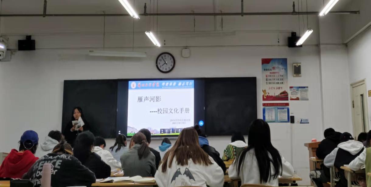 为了贯彻落实好校园文化建设,发扬好校园文化的育人功能,以多元化,多样态的方式促进员工德智体美劳全面发展。2021年10月14日体育平台官网2021级思想政治教育班在3-302教室开展了学习《雁声河影--校园文化手册》主题班会活动。本次班会活动由2021级思想政治教育专业班宣传委员王小燕主持,2021级思想政治教育班全体同学参加。