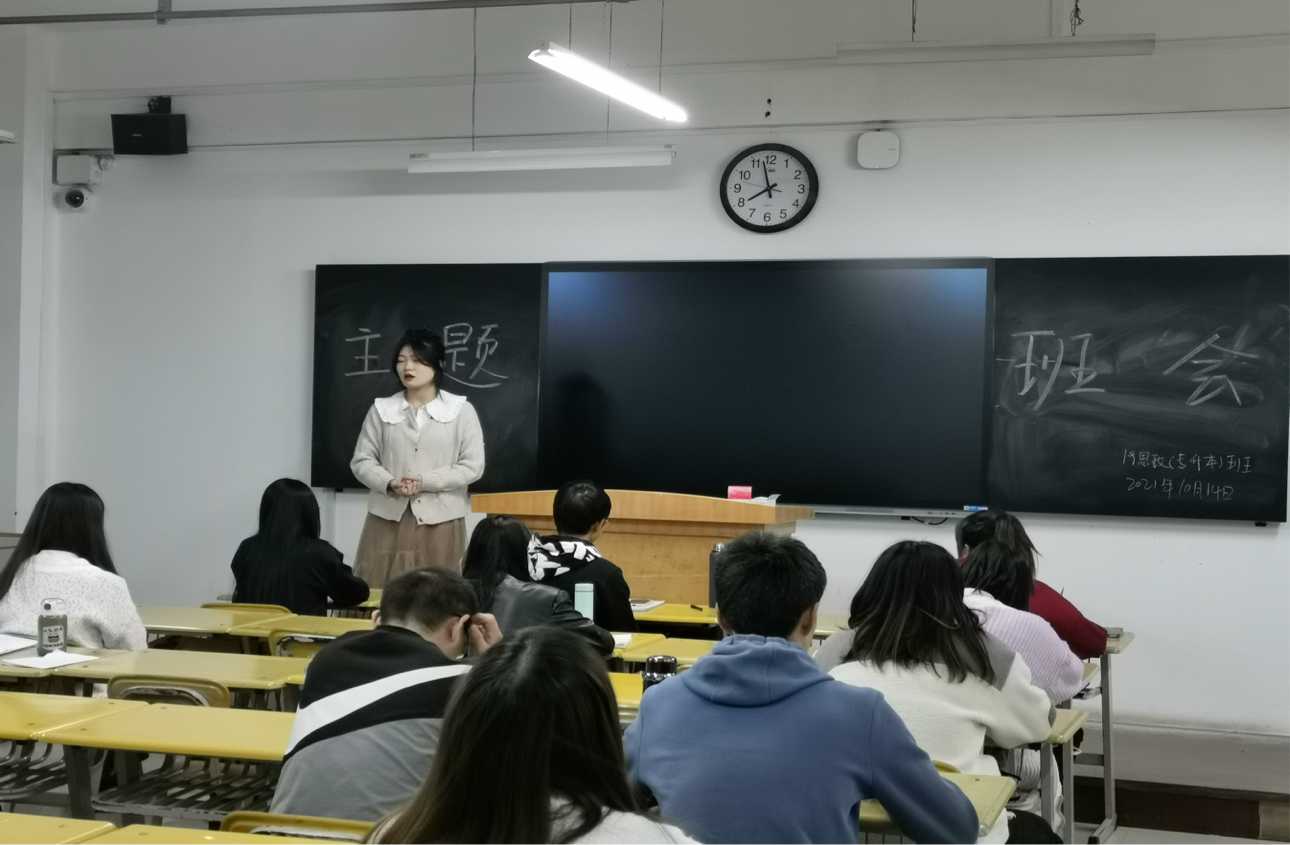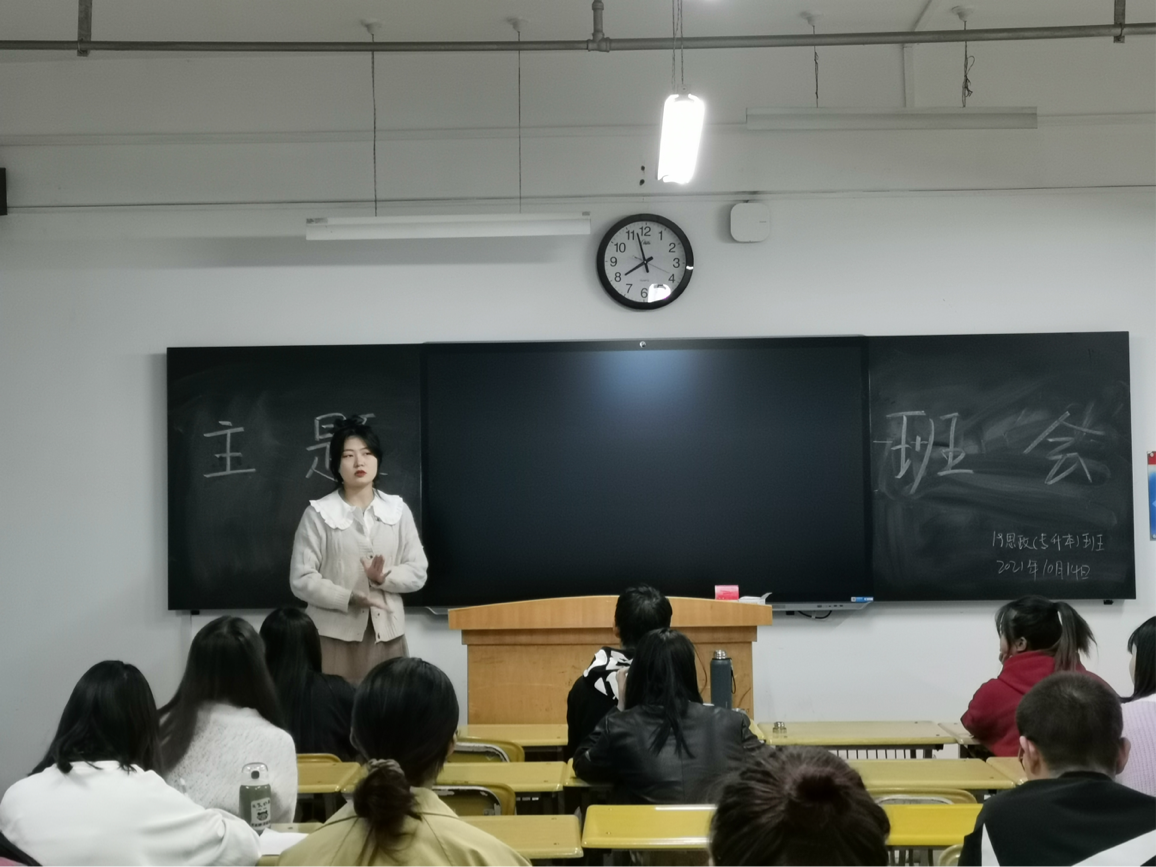 2021年10月14日晚,体育平台官网19级思想政治教育(专升本)班全体员工在3−303教室开展了以“雁声河影——校园文化手册”为内容的主题班会。