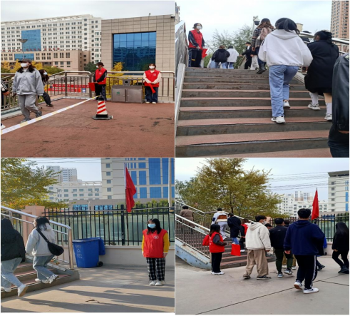 员工党支部在带领党员科学防疫、保护好自身的同时,不断增强党员责任意识,号召党员奉献爱心、爱国力行。支部成员王蕊同志第一时间申请加入守护天桥青年志愿者服务活动,提醒同学们正确佩戴口罩,引导同学们有序通过天桥到达核酸检测场地等。面对疫情敢于担当、迎难而上、无偿参与,为疫情防控贡献一份力量,是员工党员志愿服务真实的写照。