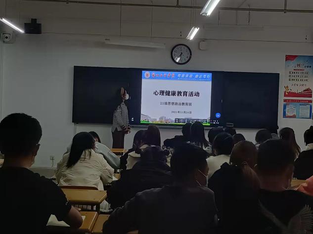 为进一步提高老员工的心理素质,促进老员工的身心健康和谐,宣传普及心理健康知识,开展心理健康教育,2021年11月25日,体育平台官网21级思想政治教育班在3-302教室召开心理健康教育主题班会。本次班会由班主任任玥老师主持,心理委员马媛同学主讲,21级思想政治教育班全体员工参加。