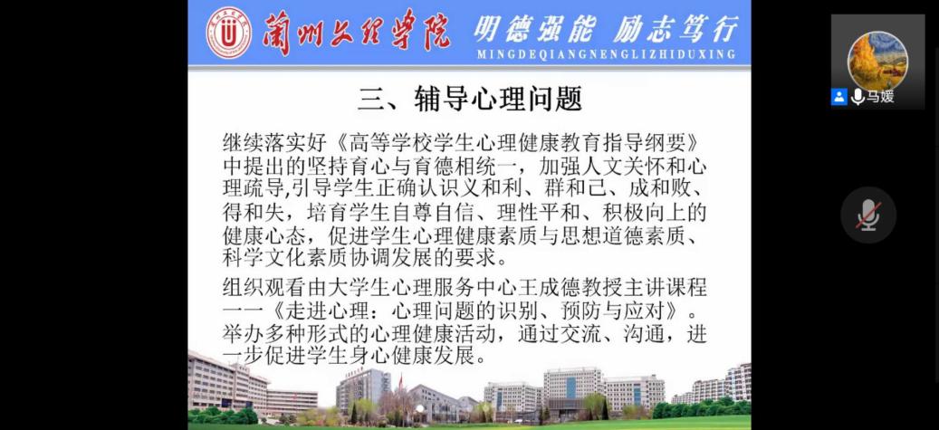 疫情当前,如何保持心理健康,远离恐慌和无措,特别是如何应对因疫情产生的创伤后应激障碍值得关注。心理委员马媛同学支持开展“心理健康教育”活动。马媛同学提到,对于个人来说,积极应对,做好自身防护,保持警惕,不必过于担心忧虑。疫情常态化下,保持平常心,困难总会过去,生活依旧可以美好。