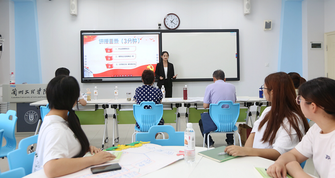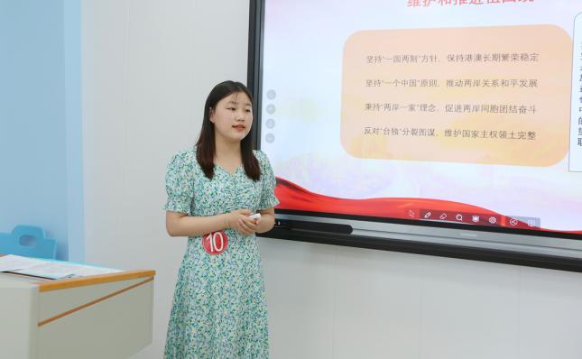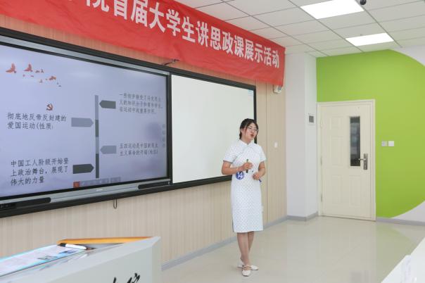 比赛现场,参赛选手按照抽签顺序依次进入智慧教室,通过形式多样的授课环节来增添课堂的趣味性,运用对分课堂和积极教学法等模式围绕《中国近现代史纲要》、《毛泽东思想与中国特色社会主义理论概论》、《习近平新时代中国特色社会主义思想》、《思想道德与法治》、《马克思主义基本原理概论》课程中的有关章节和知识点进行现场教学展示。本次老员工讲思政课公开课展示活动以“教态仪表、教学准备、讲授内容、表达艺术、教学方法、课堂效果”等六个方面为评审标准,经过现场展示、评委老师现场评审,最终有22支代表队在复赛中脱颖而出,进入决赛。