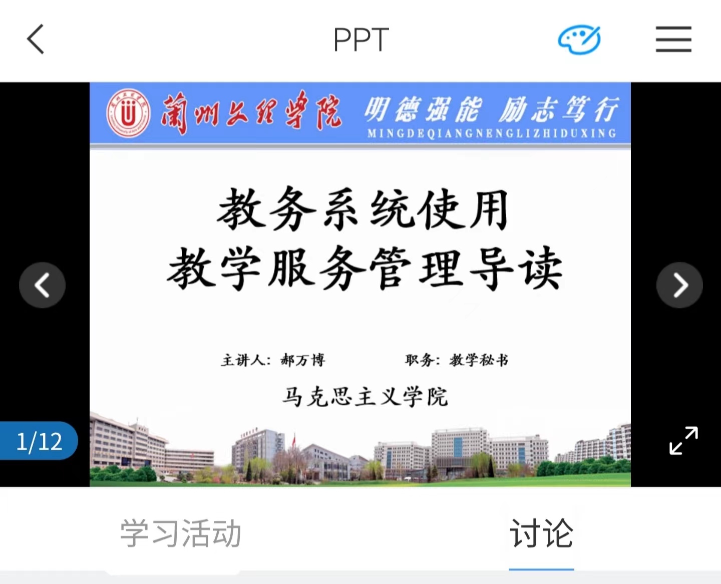 为使同学们进一步了解思想政治教育专业培养要求,帮助同学们明确学习目的、端正学习态度。2022年9月18日下午,通过学习通开展题为《教务系统使用、教学管理及服务导读》新生入学教育,本次活动由郝万博老师主讲,22级思想政治教育班全体同学参加。