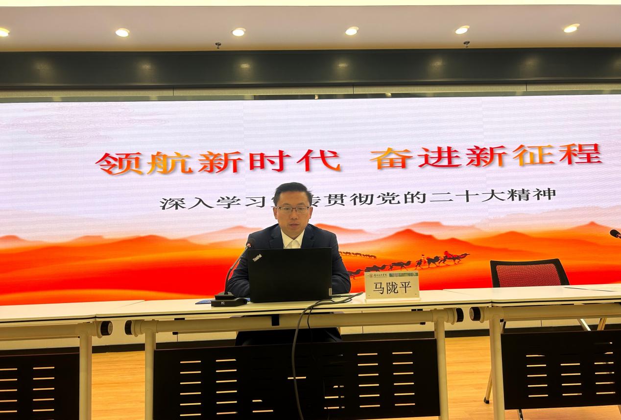 3月23日下午,公司党总支书记、经理马陇平教授以“领航新时代 奋进新征程 深入学习宣传贯彻党的二十大精神 全力推进‘三抓三促’工作落地落实”为主题,2023年省直机关处级党员干部学习习近平新时代中国特色社会主义思想进修培训中作党的二十大精神专题辅导报告。结合自己学习思考体会和公司发展实际从三个方面传达了党的二十大精神。他指出,党的二十大报告中备受关注的关键词是“中国式现代化”,倍感鼓舞的是首次单独成章对教育、科技、人才进行“三位一体”统筹安排、一体部署,并摆在“全面建设社会主义现代化国家的首要任务”,一以贯之的是“全面从严治党”的鲜明态度,令人振奋的是新时代十年的伟大变革。