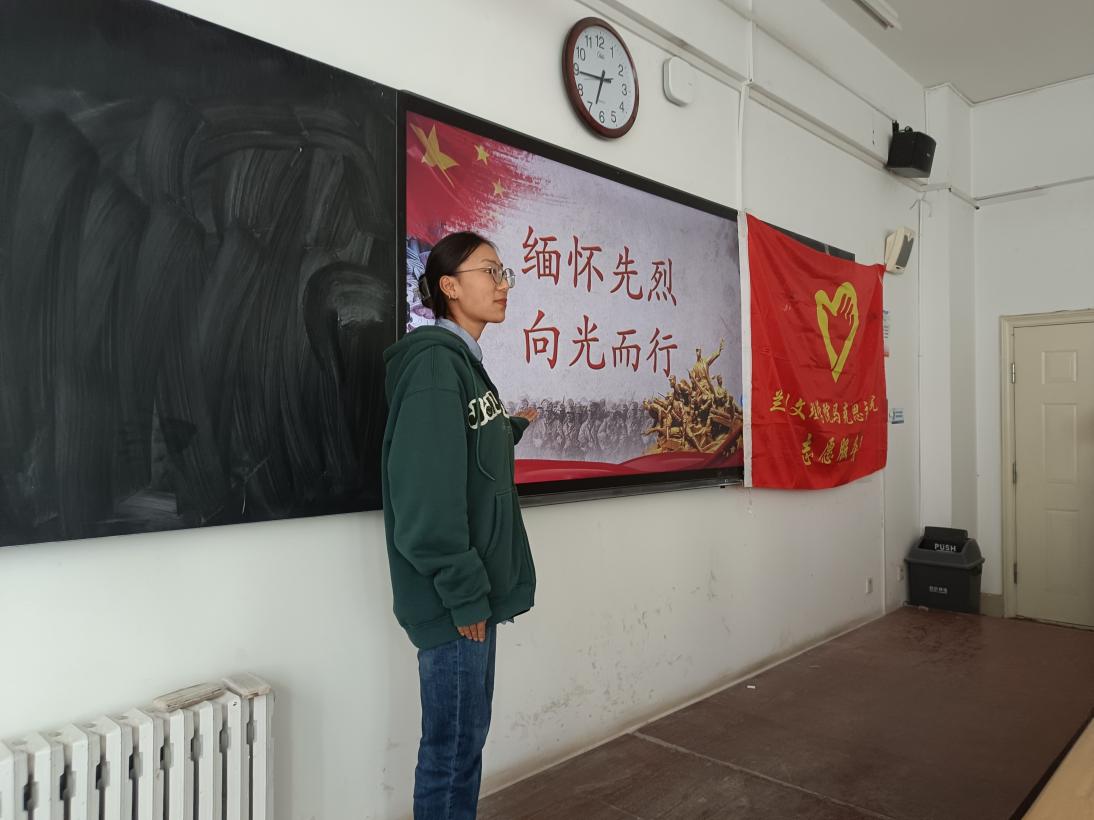 活动伊始,杨班地草同学向大家介绍了清明节的由来,革命先烈的英雄事迹,以及爱国主义的主要内容。同学们踊跃表达自己对革命先烈的无限缅怀之情,正是革命先烈的英勇奋斗,用鲜血染红中国大地,才有了我们今天丰富多彩的生活,我们应该承担起这份责任,向革命先烈学习爱国精神,继承革命先烈遗志,为将祖国建设成富强民主文明和谐美丽的社会主义现代化国家而努力奋斗。