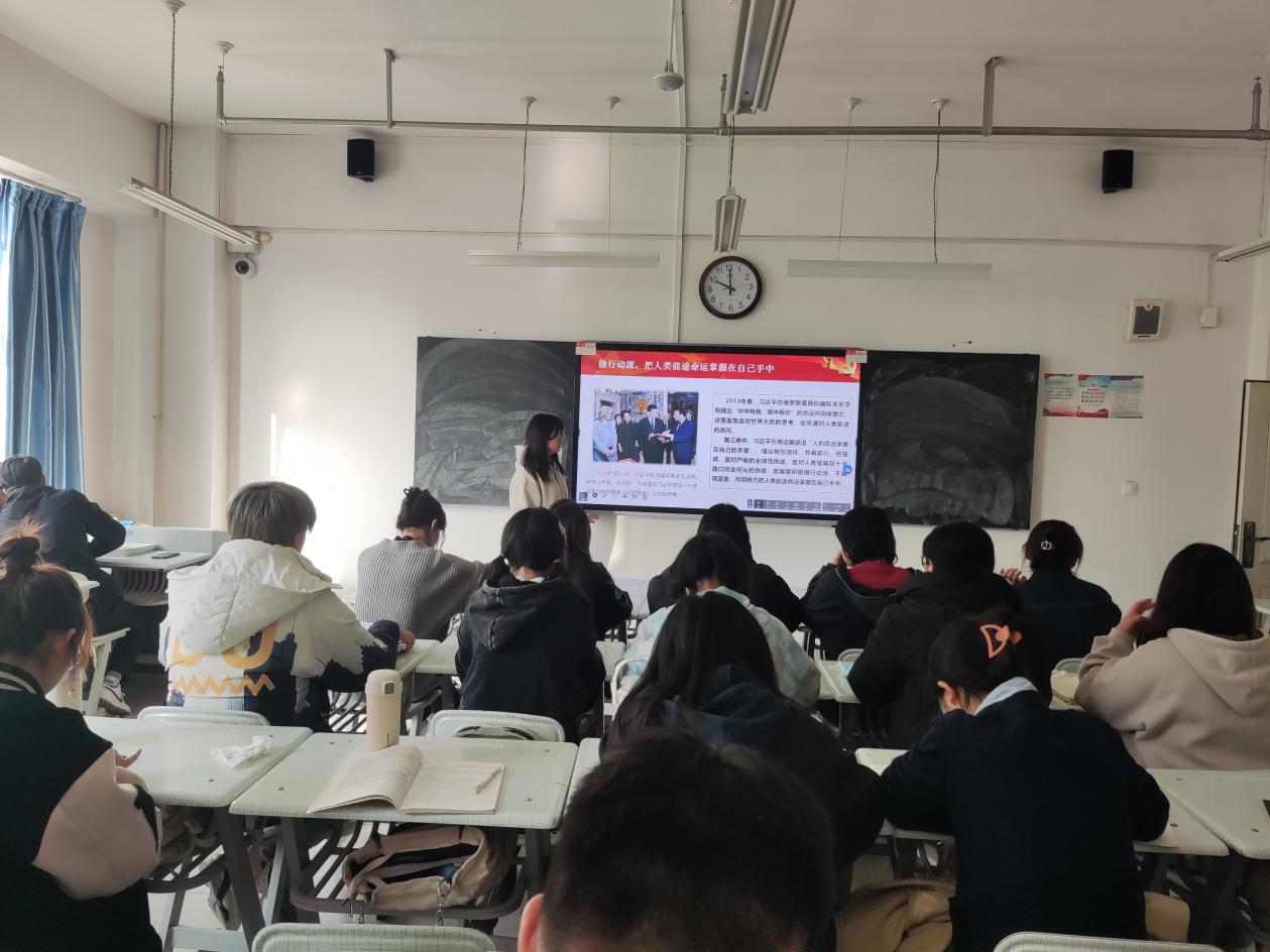 在分享环节中,同学们认真阅读本篇文章,同时结合自己的实际经验和生活感悟,探讨了如何把党的群众路线贯彻到治理国家和办实事上、如何落实创新、协调、绿色、开放、共享的新发展理念、如何全面推进依法治国、如何构建人类命运共同体等问题。同学们踊跃发言,每个人都有自己独特的见解,观点多元,气氛十分热烈。