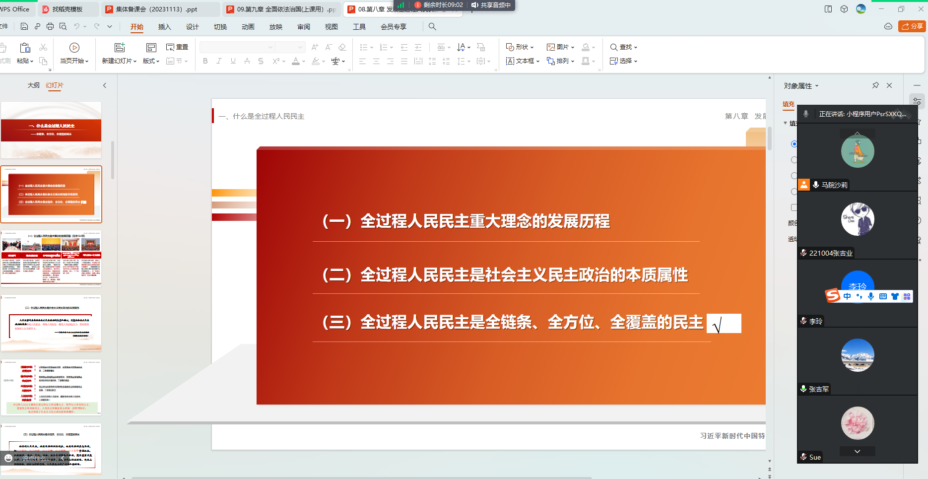 最后,任课教师们围绕课程第八章、第九章的内容进行了教学讨论和课件内容展示。