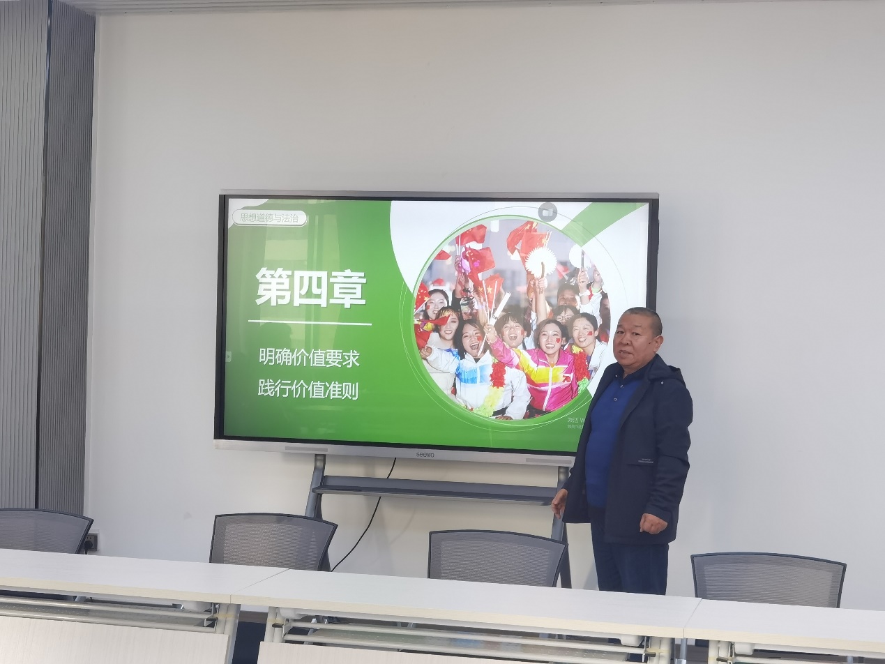 之后,刘宏周老师围绕“思想道德与法治”第四章明确价值要求践行价值准则的教学目标、教学重难点、教学设计等内容进行了示范教学。