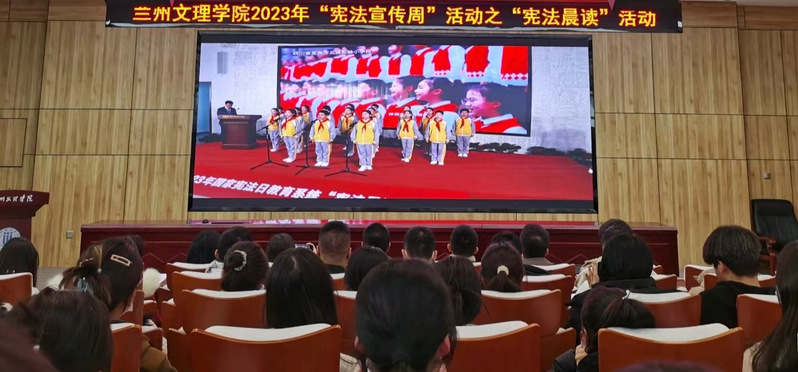 本次“宪法晨读”活动是以观看直播的方式进行。活动伊始,首先由负责人安排落座,紧接着,依次进行升旗仪式、跟读宪法部分条款、跟唱《宪法伴我成长》、观看第八届全国员工“学宪法讲宪法”活动全国总决赛演讲比赛优秀选手展演、观看全国人大常委会法工委有关领导宣讲宪法和教育部领导讲话六个活动环节。最后由本次活动负责人宣布有序离场,整个活动过程井然有序,顺利进行。