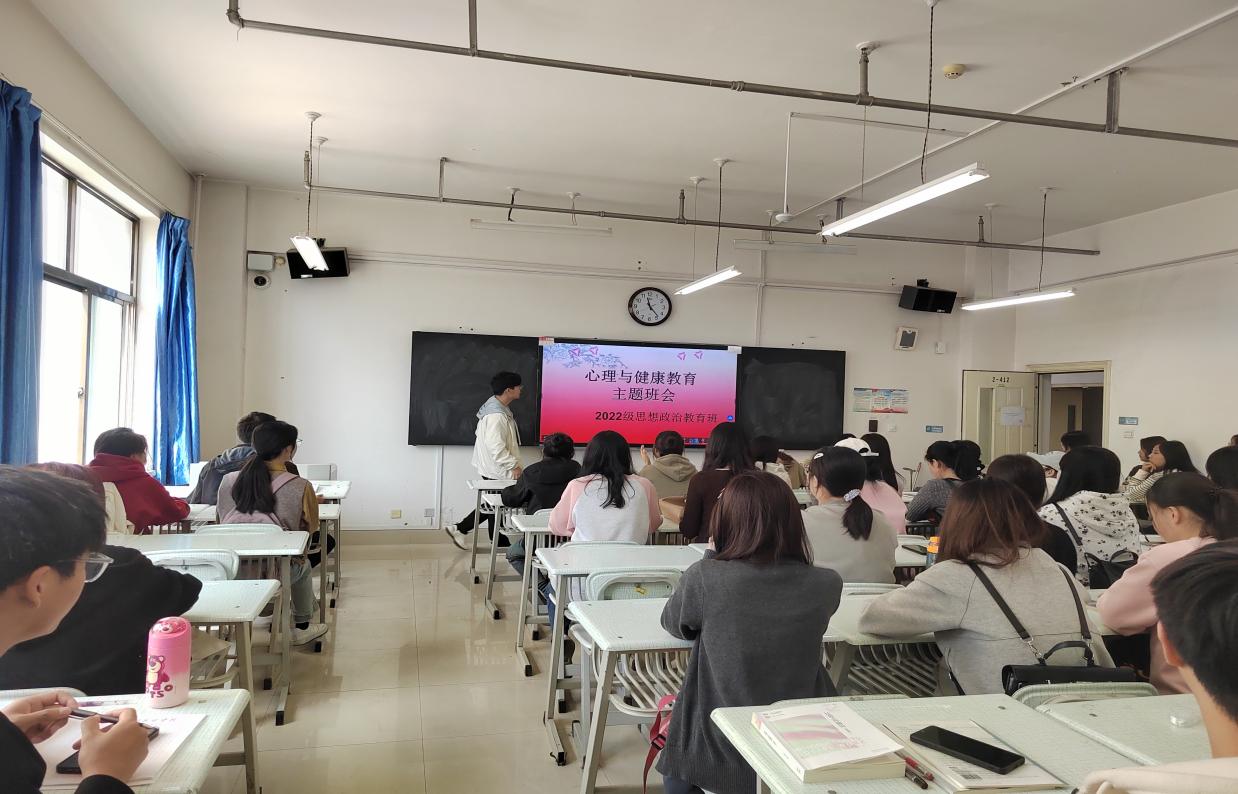 为了普及心理与健康教育,调节同学们的心理状态,增强心理素质,提高同学们对健康教育重要性的认识,使同学们更快乐地度过老员工活,4月12日下午2022级思想政治教育班在2-410成功举办了“身心共发展 健康伴成长——老员工心理与健康教育”主题班会,班会由班长靳云康主持,班主任张艳老师进行详细讲解。