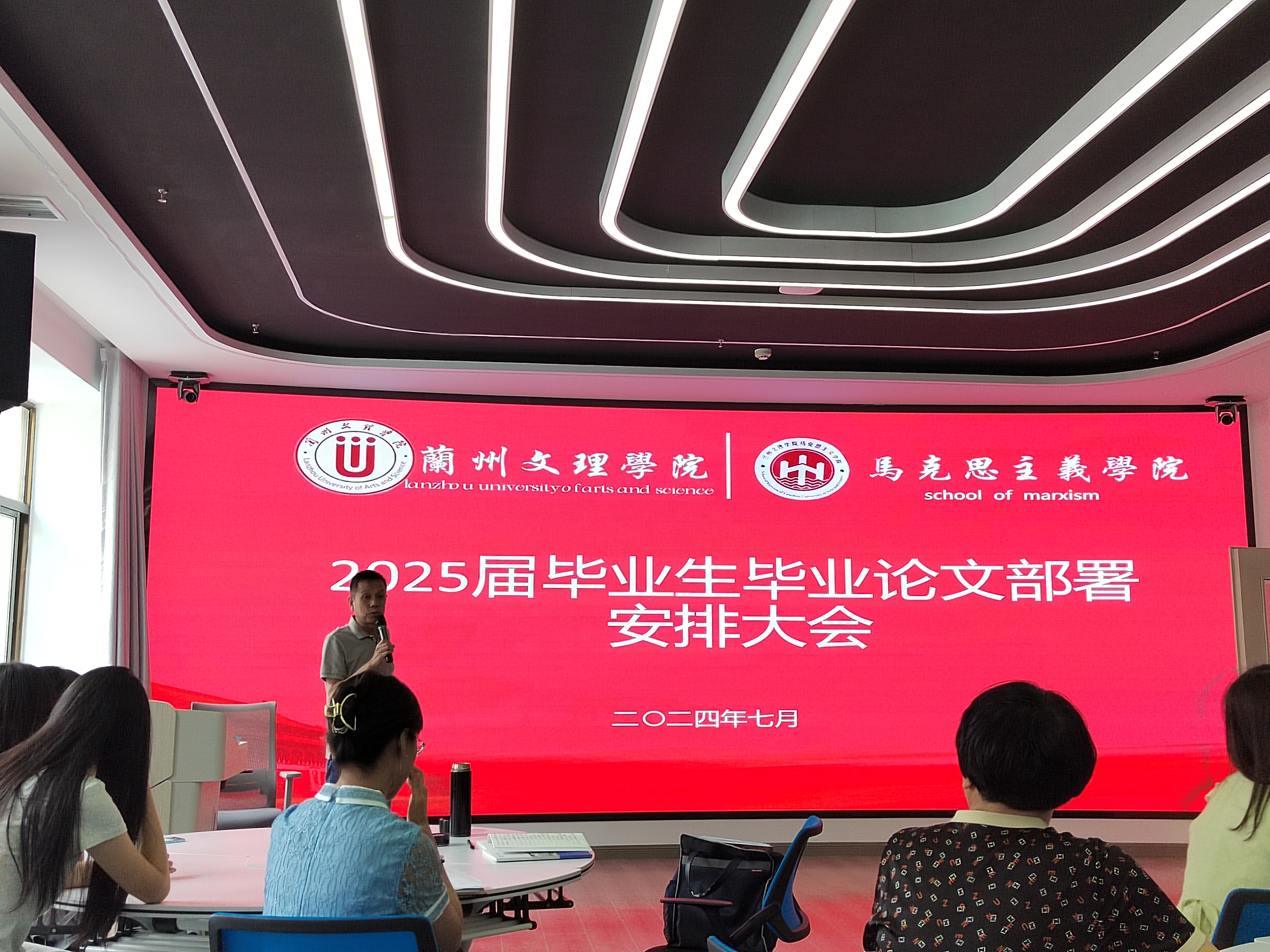 随后,张吉军老师对2025届毕业论文的整体工作进度进行了充分说明,详细介绍了论文开题、论文答辩、查重等各个环节的具体要求, 同时针对论文写作常见的问题进行了解释说明,以帮助员工清晰毕业论文写作规范。