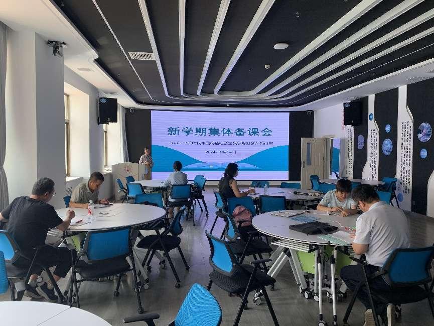 8月23日下午体育平台官网“习近平新时代中国特色社会主义思想概论”教研室在公司VR智慧教室举办新学期集体备课会。会议由教研室主任沙莉主持,教研室任课教师参加此次会议。